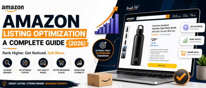 Amazon listing optimization is essential for any business looking to succeed in the competitive eCommerce marketplace. In this complete 2026 guide, learn how to optimize your Amazon product listings using proven Amazon SEO strategies, high-converting keywords, compelling product titles, engaging bullet points, and detailed product descriptions. Discover how professional product images, backend keywords, and customer reviews can significantly improve your product visibility, keyword rankings, and overall sales performance.